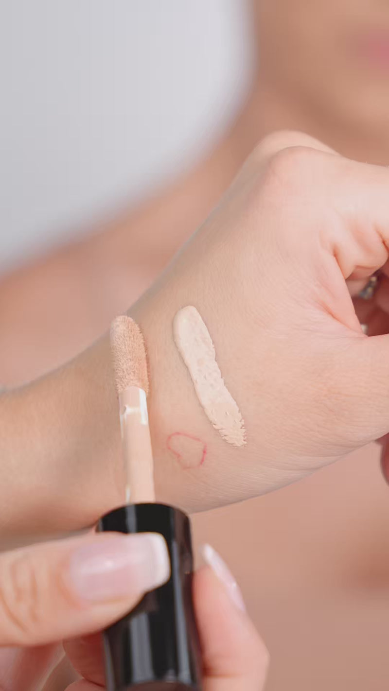Appliquez délicatement l'anticernes sous vos yeux à l'aide de l'applicateur, puis estompez-le avec votre doigt, une éponge humide ou un pinceau pour une couvrance uniforme.